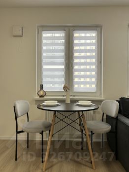 Общая площадь квартиры - 34, 2 кв. м., эргономичная планировка. Большая кухня-гостиная (14,7 кв.м.) с двумя окнами и четким зонированием пространства (кухня, столовая, гостиная). Диван на кухне раскладной. Квадратная компактная спальня (10,3 кв. м.). Просторная прихожая (6,8 кв.м.).
