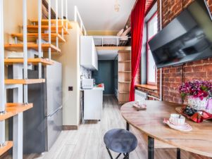 В наших апартаментах вы сможете ощутить неповторимый дух времени: стены выполнены из оригинального царского кирпича, сохранившего свою аутентичность с момента постройки. Уютный интерьер, и современное оборудование создадут идеальные условия для вашего комфортного проживания.
