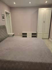Сдаётся уютная однокомнатная квартира с евроремонтом, расположенная в современном кирпичном доме 2013 года постройки. Квартира находится на 23 этаже 27-этажного здания. Общая площадь — 40 кв. м, высота потолков составляет 2.6 метра. Всего в доме 4 пассажирских и 4 грузовых лифта, поэтому проблем с ожиданием лифта не будет.