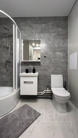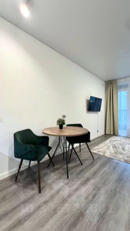 Квартира полностью готова для комфортного проживания. Внутри выполнен современный ремонт. Студия оборудована всей необходимой техникой: холодильником, посудомоечной машиной и телевизором, варочной панелью, духовым шкафом, микроволновкой, чайником, утюгом, стиральной машиной, беспроводным пылесосом. Санузел совмещенный, оборудован душевой кабиной.