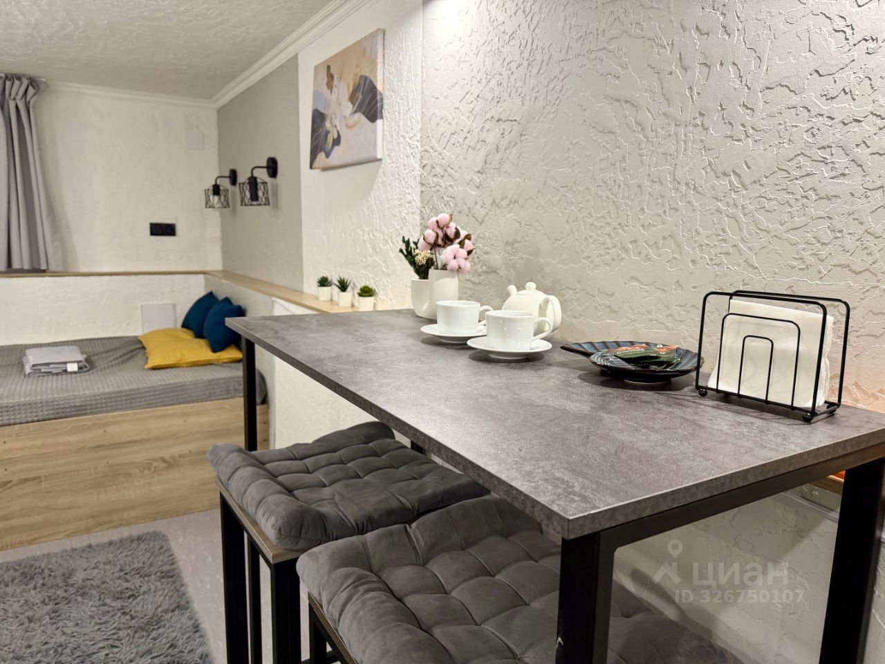 Студия с самым большим метражом (20м) , удобной планировкой и отдельной гардеробной комнатой.