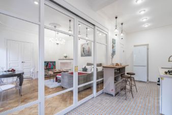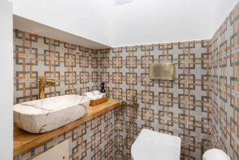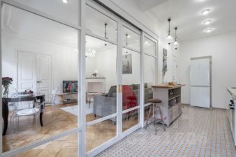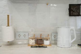 -Полностью укомплектованная кухня : плита, чайник, духовка, вытяжка, холодильник, посуда и столовые приборы,посудомоечная машина,кофемашина