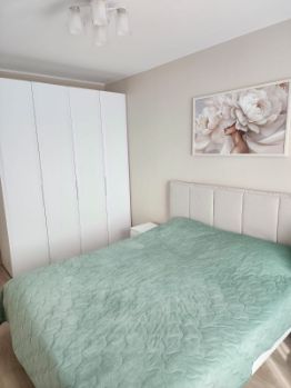 Отдельная спальня с дорогой мебелью, кровать с подъемным механизмом 160 200 и ортопедическим матрасом. Шторы в спальне блэкаут. Огромный четырехстворчатый шкаф для одежды, комод, тумбочка.