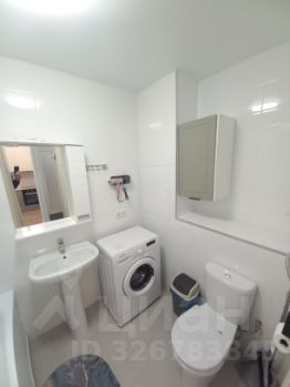 - Ванная комната с полноценной ванной, стиральной машиной, зеркало с подсветкой и полотенцесушителем.