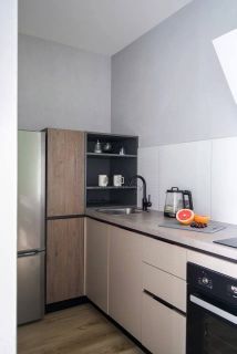 Современная кухня оборудована всем необходимым для кулинарных шедевров и приятных завтраков.