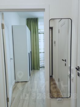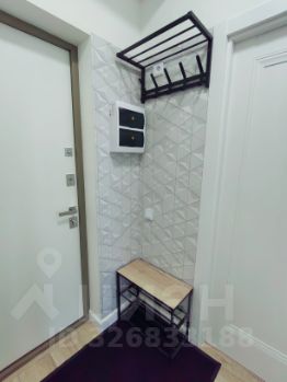 В прихожей настенная вешалка, зеркало, обувница и большой грязезащитный коврик.