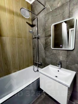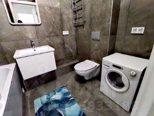 Санузел совмещённый (полностью в кафеле) оборудован ванной, унитазом, раковиной с тумбой, зеркалом с подсветкой, стиральной машиной и электрическим полотенцесушителем. Пол с подогревом.
