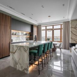 Предлагаем вашему вниманию просторную и стильную 4-комнатную квартиру с дизайнерским ремонтом, расположенную на пятом этаже кирпичного дома 2017 года постройки. Общая площадь квартиры составляет 180 кв. м, а высота потолков — 3 метра, что создаёт ощущение простора и уюта. Квартира располагается в удобном районе в 5 минутах езды на автомобиле от станции метро "Новочеркасская".