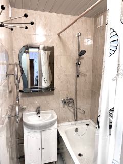 Только что сделан ремонт. Кухня оборудована всем необходимым- бытовой техникой и посудой. Гостиная в классическом стиле с мебелью времен СССР в хорошем состоянии. Большой письменный стол, уютные кресло и кресло - качалка, раскладной диван, сервант. Вся современная мебель - новая. Квартира сдается впервые и вы будете первыми гостями.