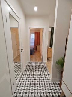 В распоряжении жильцов кондиционер, холодильник, духовка, фильтры для питьевой воды, посудомоечная машина, телевизор. А также колонка Алиса (в спальной комнате умные лампочки, управляются голосом или с выключателя)