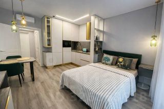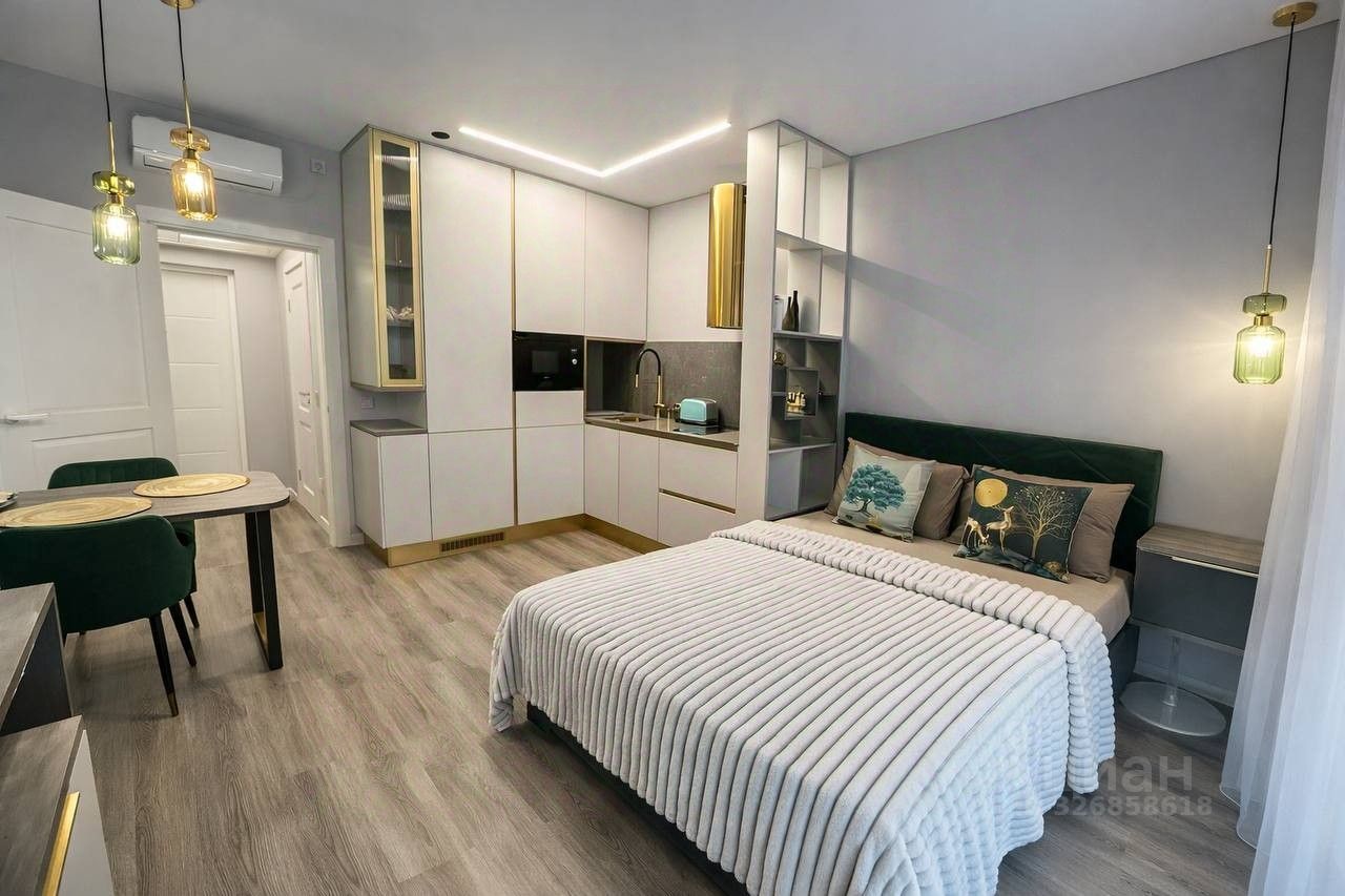Просторная студия "заезжай и живи", с выделенной зоной кухни и двухместной кроватью ждет своих жильцов!