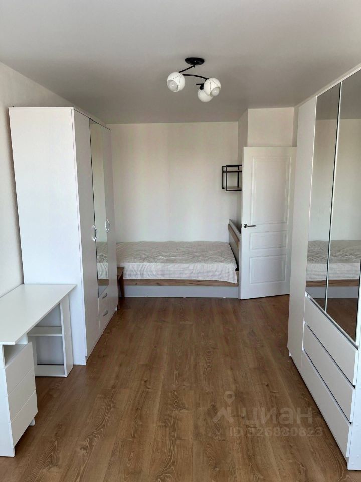 В комнате два шкафа, двуспальная кровать с ортопедическим матрасом, книжная полка, письменный стол.