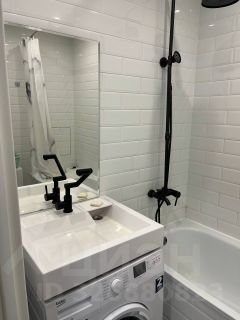 В ванной комнате стиральная машина, теплый пол и электрический полотенцесушитель.