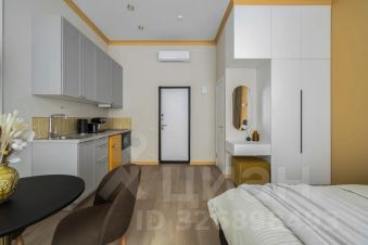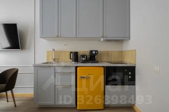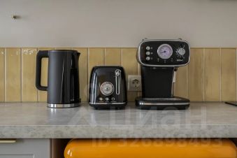 Оснащение студии: холодильник, микроволновая печь, индукционная плита, кофемашина (и молотый кофе), чайник, тостер и вся необходимая для приготовления и приёма пищи посуда