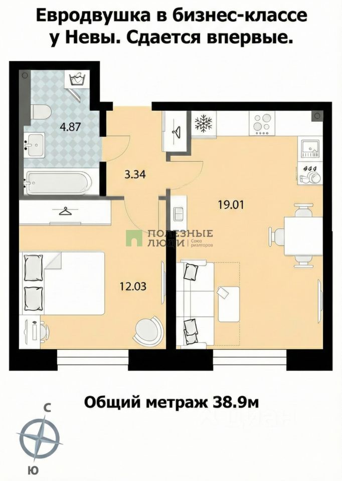 Сдается впервые. Абсолютно новая квартира формата "Евро-2" в ЖК бизнес-класса "Цивилизация на Неве".
