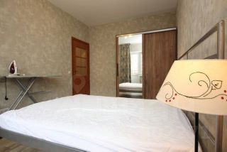двухспальный раскладной диван, двухместная кровать, холодильник, морозильная камера, духовой шкаф, плита, чайник, стиральная машина, посудомоечная машина, 2 шкафа, гладильная доска, утюг, сушилка для вещей. В квартире есть балкон.
