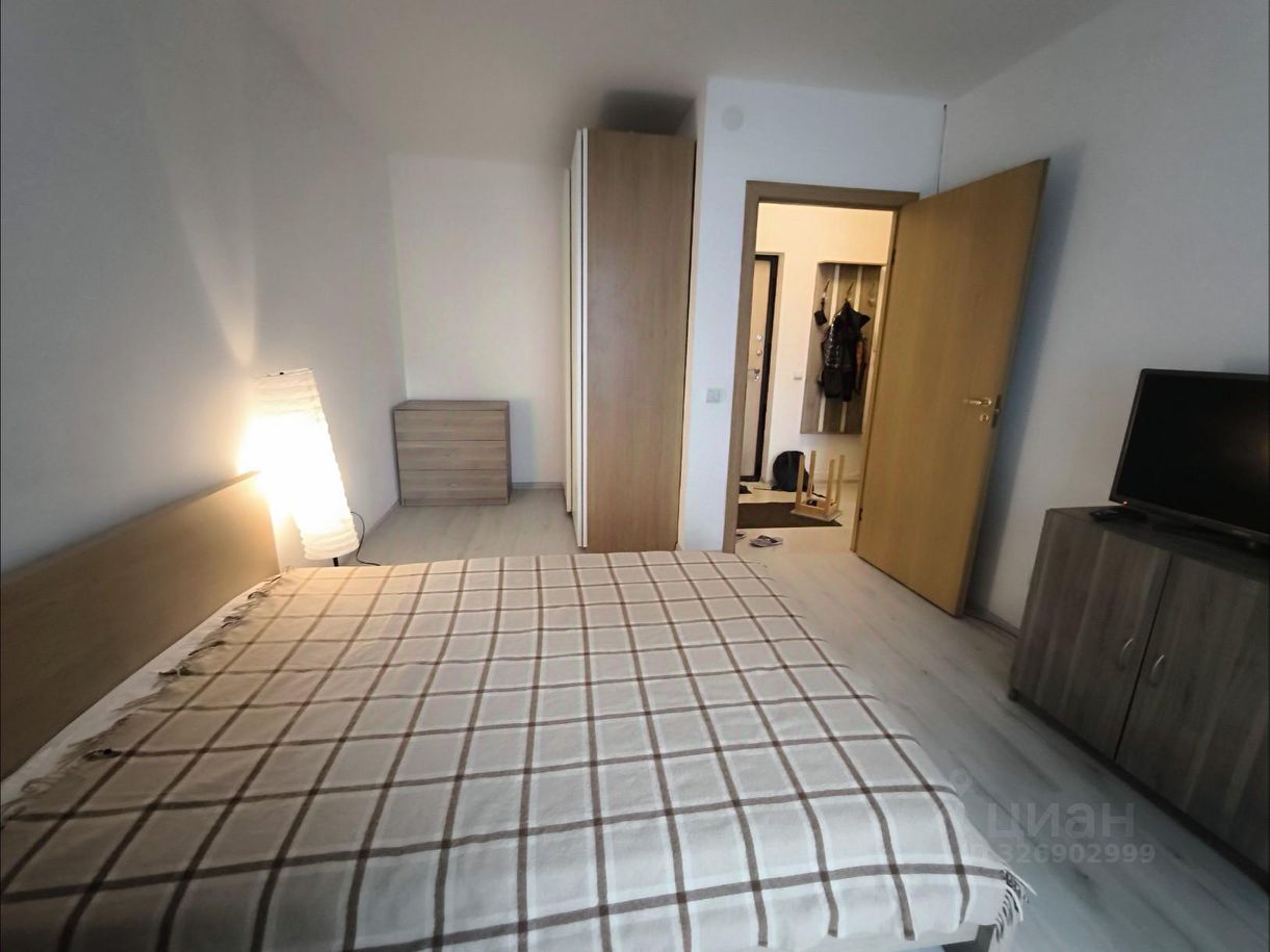Общая площадь 34.7 кв. м, жилая — 17 кв. м, кухня — 9 кв. м. Квартира расположена на 2-м этаже 26-этажного монолитного дома, построенного в 2014 году. Высота потолков — 2.7 метра.