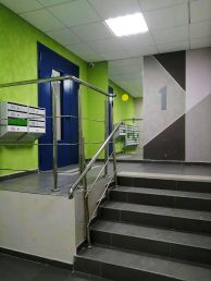 Дом кирпичный, в хорошем состоянии, с наземной парковкой и наличием как пассажирского, так и грузового лифта.