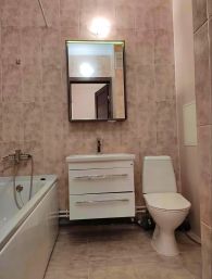 Квартира с евроремонтом оборудована всем необходимым для комфортного проживания. В комнате и на кухне есть мебель, а также техника — холодильник, плита и стиральная машина. Окна выходят во двор, что обеспечивает тишину и уют. В совмещенном санузле установлена ванна.