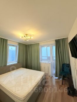 В квартире сделан дизайнерский ремонт. Обстановка включает мебель в комнате, а также полный комплект техники: холодильник, посудомоечная машина, телевизор, стиральная машина. Ванная комната оборудована ванной. Удобная планировка и наличие лоджии создают уютную атмосферу для проживания.