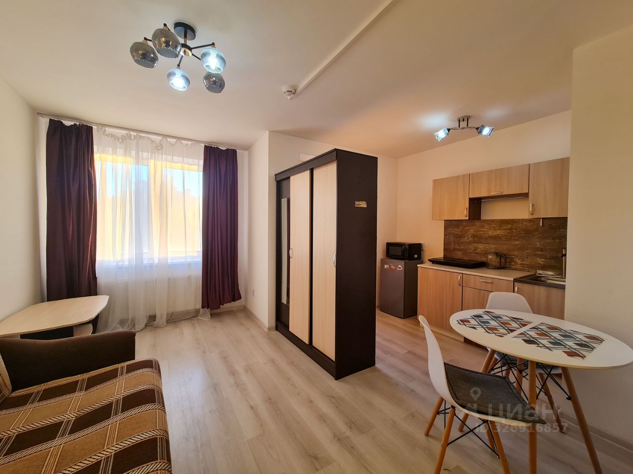 Сдаётся недорогая и просторная квартира-студия с выделенной кухонной зоной в жилом комплексе Стороны Света, расположенном в п. Бугры.