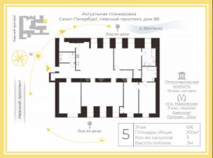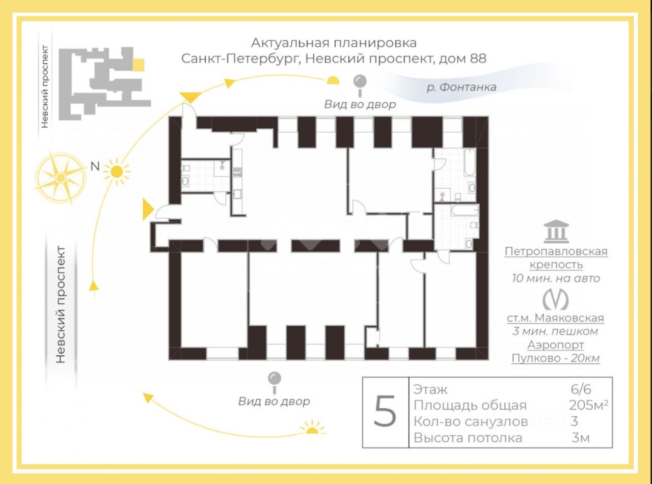 Арт. 130045462 Предлагается в аренду просторная квартира площадью 205 м², с высокими потолками (3 метра) и с видом на достопримечательности города. (Дом на второй линии от Невского, нет шума от машин и города)