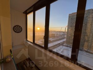 Достаточно вместительный застекленный балкон с видом на город и на ТЦ Экопарк, который находится через дорогу.
