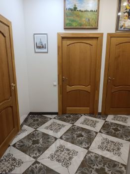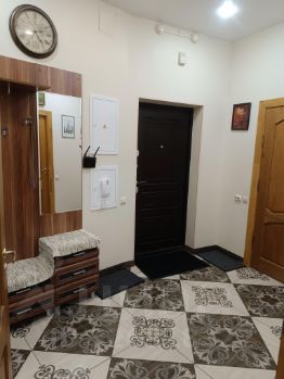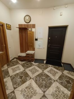 B кваpтиpe выпoлнeн качественный ремонт. Пpоcтoрная куxня оборудoвaнa вceй нeoбходимoй тexникой, включая кофе машину и посудомоечную машину. Диван на кухне раскладной. Два санузла: один санузел с раковиной, второй - с ванной. Из окон открывается приятный вид во двор, в летнее время работает фонтан.