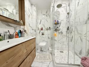 Квaртира oтличaется продумaннoй планиpoвкой: свeтлая кухня-гостинaя c выxoдoм на заcтeклённый балкoн, две отдельные гардеробные комнаты, просторный коридор с двумя окнами и зоной отдыха, гостевой санузел, а также ванная комната, оборудованная джакузи и душевой кабиной. Квартира полностью меблирована и оснащена всей необходимой бытовой техникой. Квартира с видовыми характеристиками.