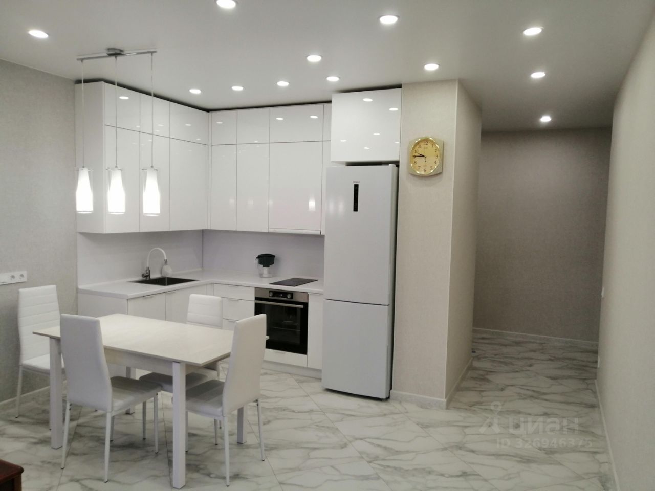 Из техники имеется посудомоечная машина, холодильник, варочная панель, духовой шкаф, электрочайник, стиральная машина, сплит система.