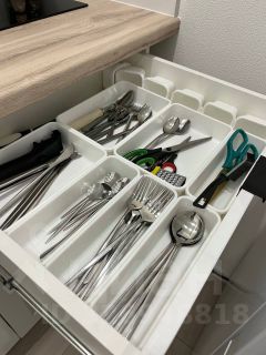 В кухне: кухонная мебель, с встроенной посудомоечной машиной, вытяжкой, варочной поверхностью. Есть аэрогриль, пароварка, фильтр для воды, холодильник, чайник, вся необходимая посуда и приборы.