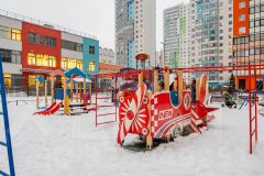 Район обладает развитой инфраструктурой: во дворе находятся несколько школ и детских садов, а также все необходимые магазины, аптеки и пекарни в шаговой доступности. Много парковых зон для прогулок, что делает это место идеальным для семейного проживания.