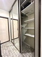 В коридоре находится вместительный шкаф-купе со встроенной системой хранения.