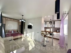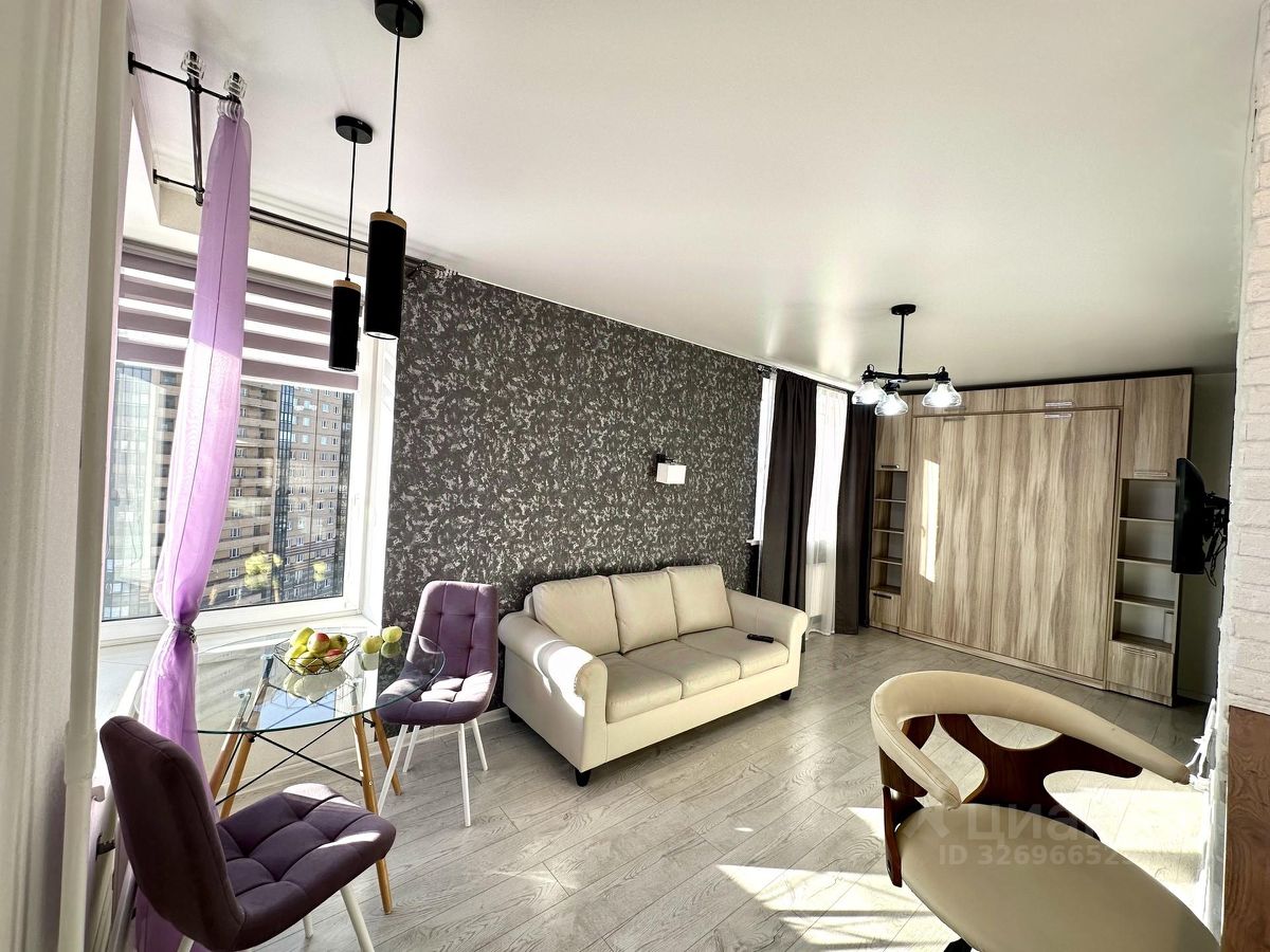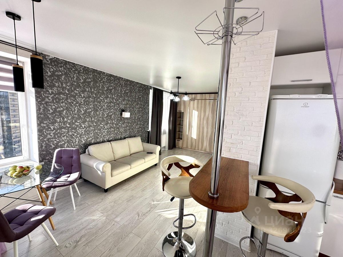 Просторная студия с комфортной для жизни планировкой - зона кухни отделена от жилой зоны и занимает отдельную большую нишу, 4 окна, застекленная и утепленная лоджия.