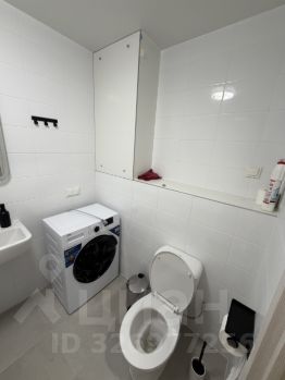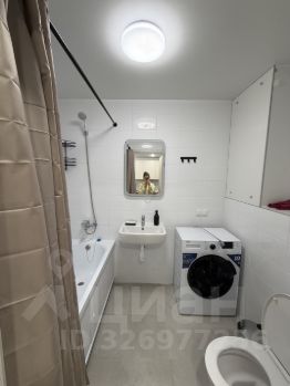 В ванной: стиральная машина, зеркало с подсветкой.