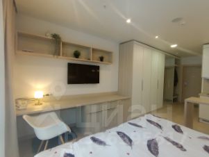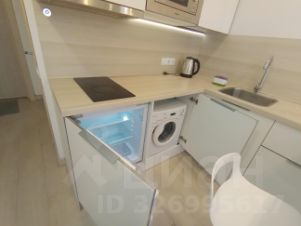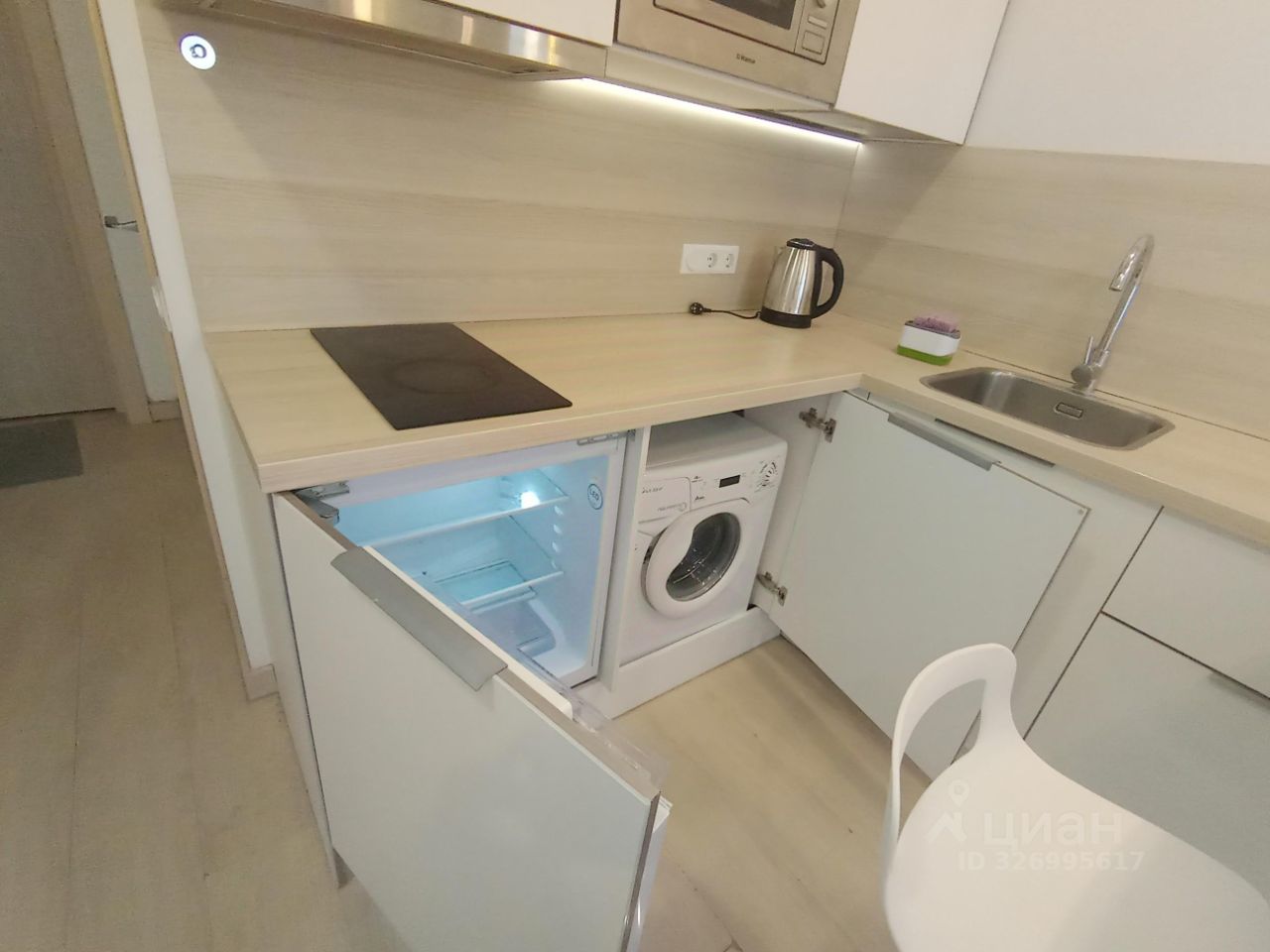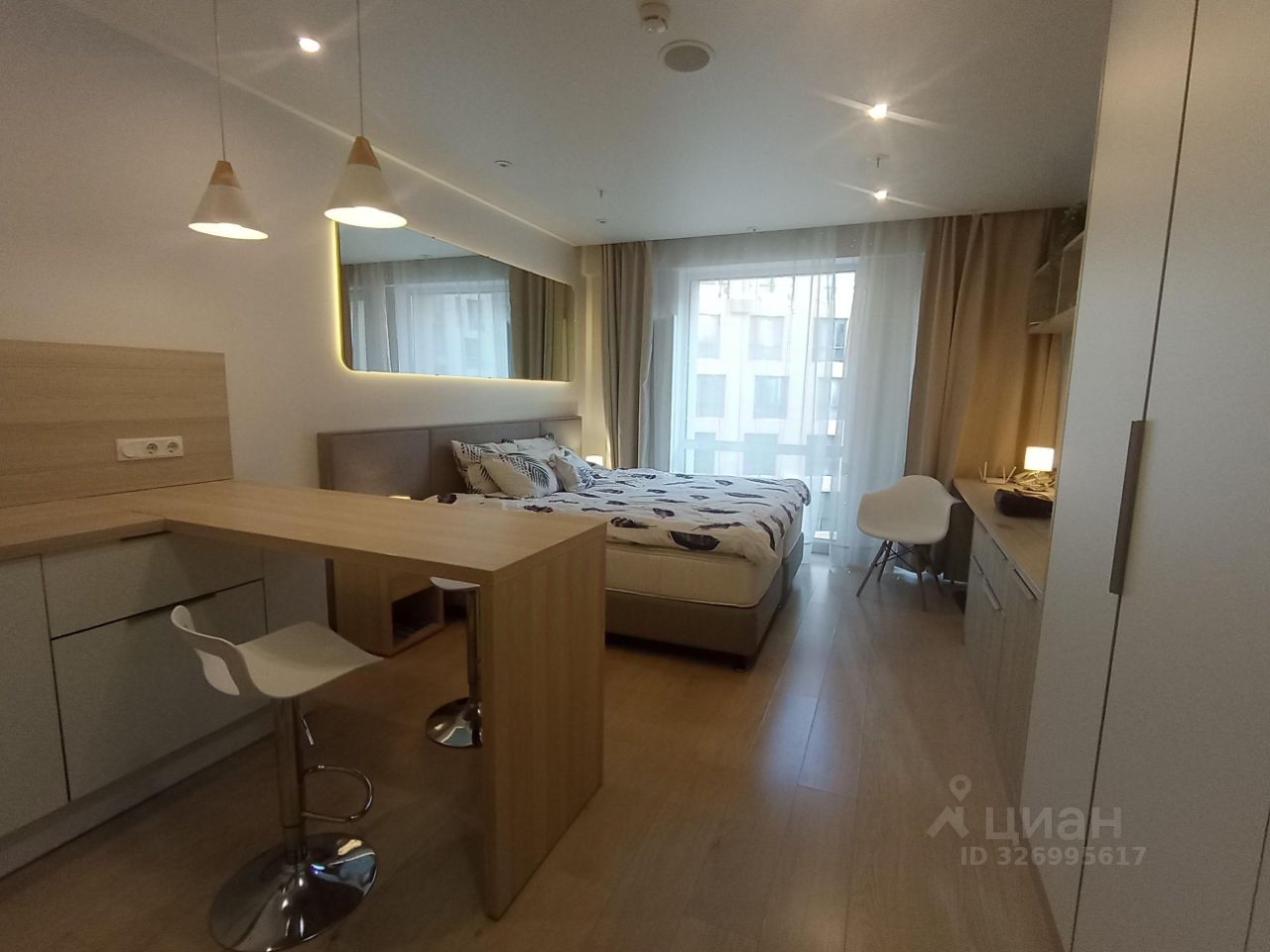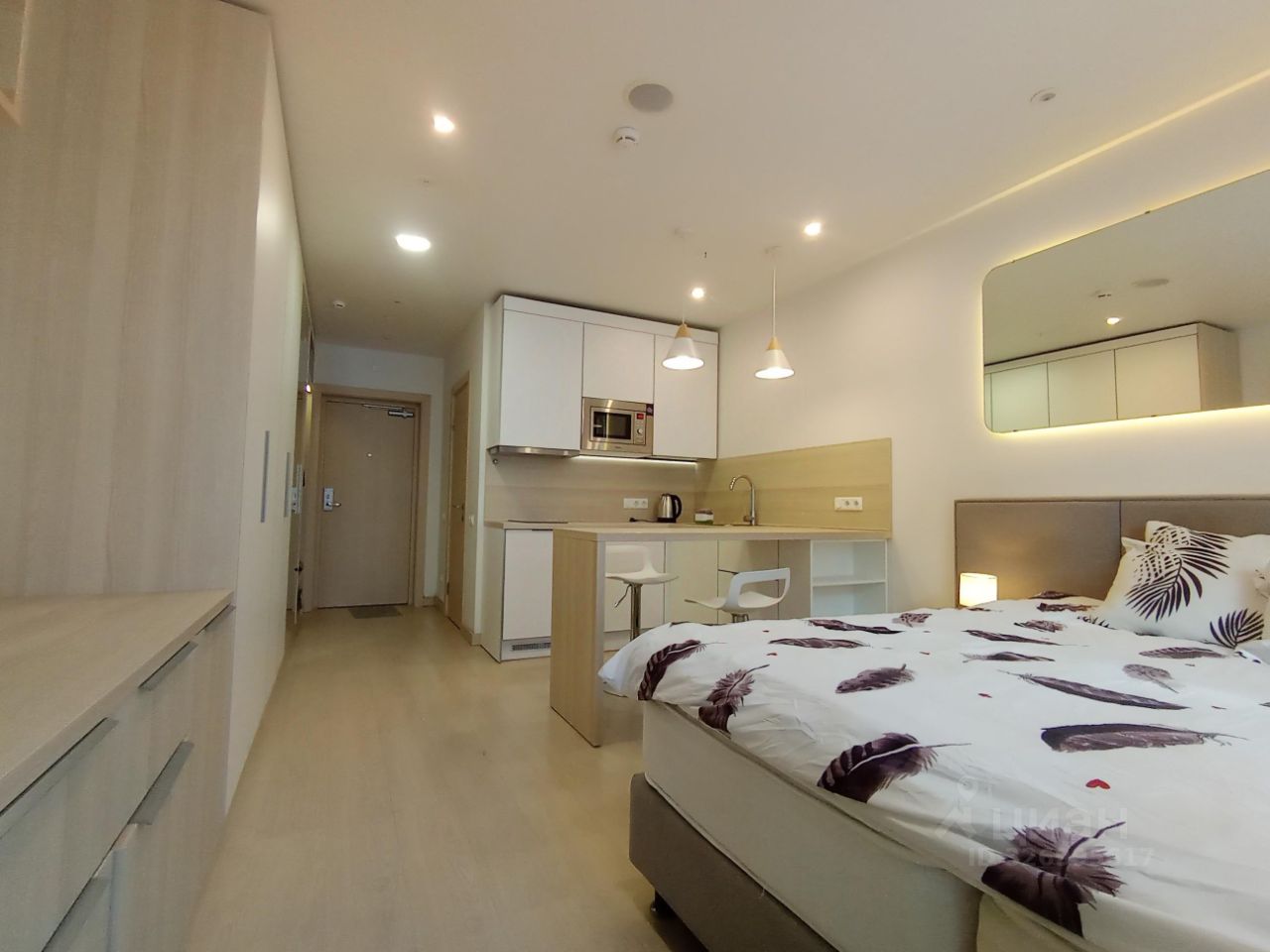 В студии качественная отделка, продуманный интерьер. Пространство организовано максимально функционально: жилая площадь составляет 18 кв. м, а кухня — 4 кв. м. В студии есть вся необходимая мебель как на кухне, так и в жилой зоне. Множество мест хранения, несколько сценариев освещения. Санузел совмещенный с современной душевой кабиной. В наличии вся необходимая техника: холодильник, посудомоечная машина, телевизор и стиральная машина. Окна выходят во двор, поэтому в квартире тихо и спокойно.