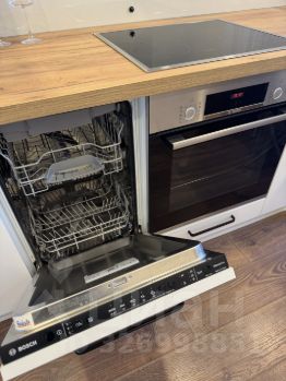 Сделан очень хороший красивый ремонт, светлая современная кухня с техникой BOCH, посудомоечной машиной, встроенным холодильником, плитой и вытяжкой. Все почти новое, чистое и аккуратное, в идеальном состоянии.