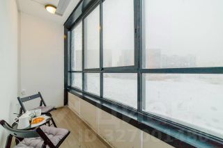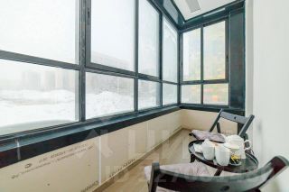 А света здесь предостаточно. Два больших окна, что редкая удача для студии, наполняют пространство воздухом с утра до вечера. Это идеальная сцена для вашего утра с чашкой кофе на просторной лоджии, оборудованной как комфортная зона отдыха, или для уютного вечера за просмотром фильма.