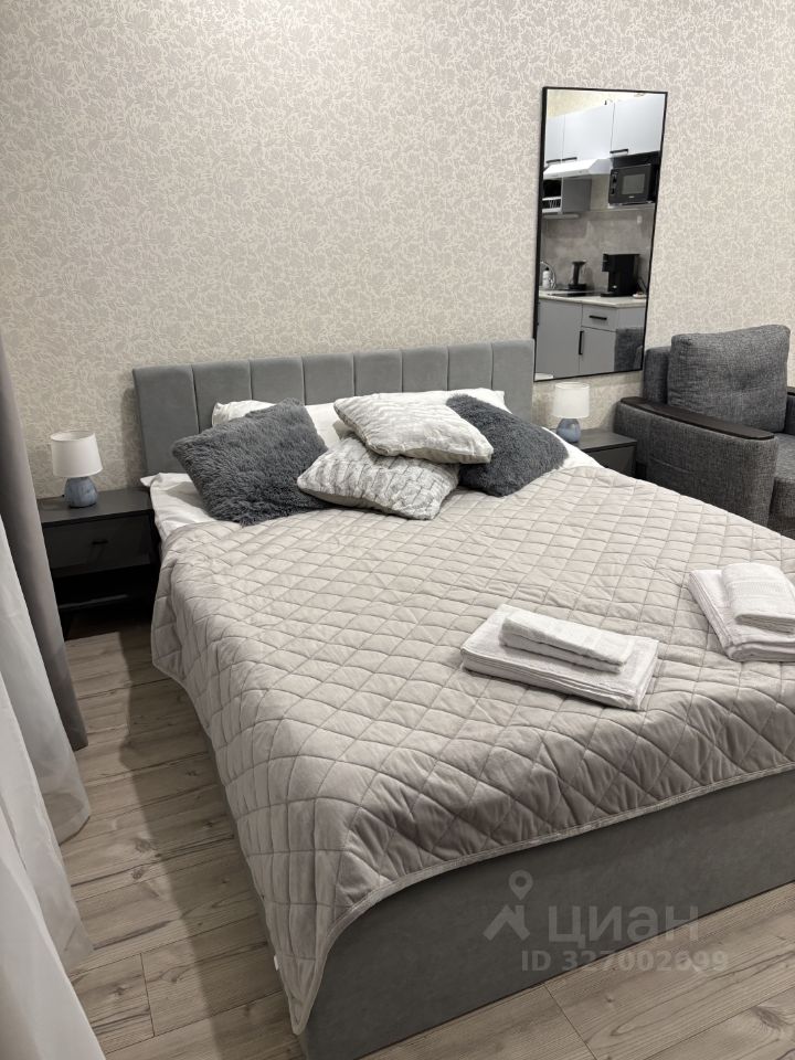 Уютная и эстетичная квартира-студия, 3 спальных места - двуспальная кровать и кресло-кровать. Телевизор смарт-тв (Кинопоиск, Рутуб). Полностью укомплектована для комфортного проживания: кофеварка капсульная, чайник, чай, кофе, холодильник с морозильной камерой, микроволновка, утюг, сушилка, фен, стиральная машина, гигиенические принадлежности, посуда. Ванная (не душевая кабина). Бесконтактное заселение, электронный замок.