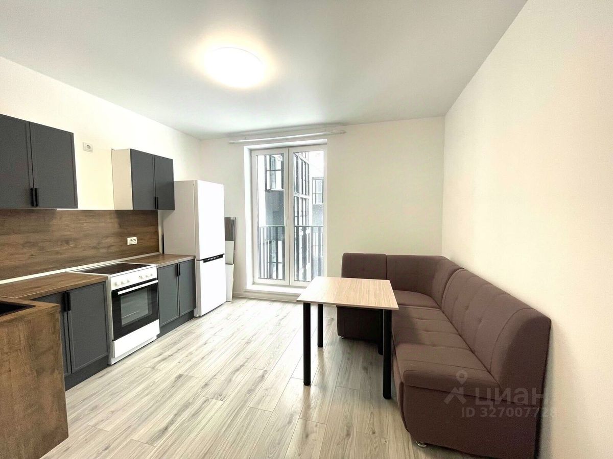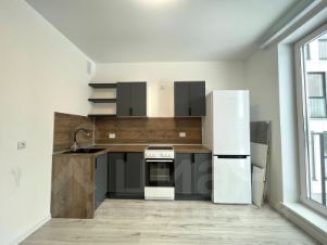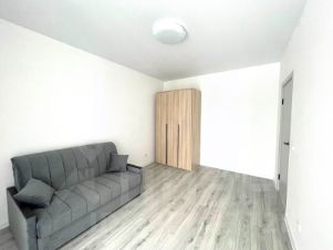 Кухня просторная. Может служить и гостиной. Помещения оборудованы всем необходимым: на кухне установлена мебель, есть мягкий уголок с дополнительным спальным местом, а также холодильник и электрическая плита. В квартире выполнен современный евроремонт от застройщика. Окна выходят во двор, имеется балкон в комнате, а на кухне -французский балкон.