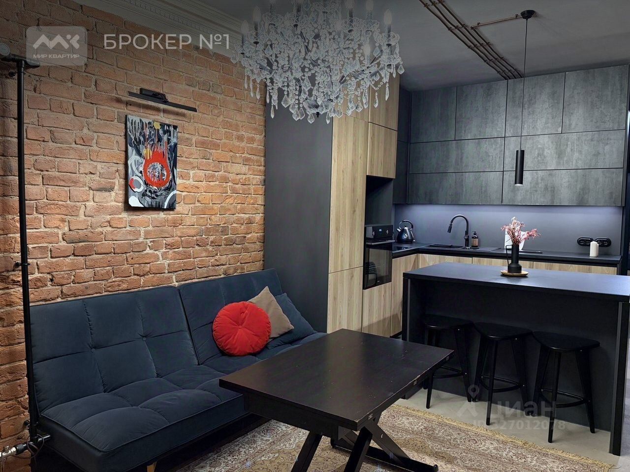 Ремонт выполнен по индивидуальному проекту в стиле "лофт".