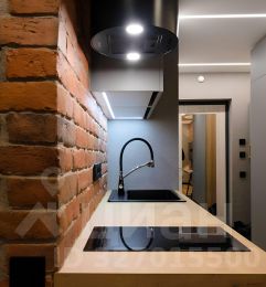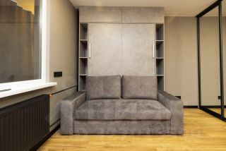- Мебель: в ванной, зоне кухни, на балконе выполнена по индивидуальным чертежам. Комната обустроена уникальной системой хранения вещей, а также трансформером, который позволяет двумя движениями превратить гостиную с диваном в спальню с полноценной кроватью размером 200х140. Ортопедический матрас кровати обеспечит наивысший комфорт сна. Вместительная гардеробная позволит расположить внутри крупногабаритные вещи, а также всю одежду как на полках, так и на вешалках.
