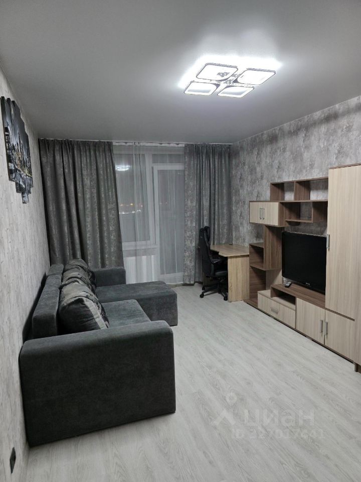 В квартире есть все необходимое для комфортного проживания: современная мебель на кухне и в комнате, техника — холодильник, телевизор и стиральная машина. Санузел совмещенный, в ванной комнате установлена ванна. Из дополнительных удобств — просторная лоджия, где можно наслаждаться утренним кофе.