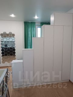 - шкаф в комнате разделяет пространство, за счет чего зона сна и отдыха даже в студии становится интимной и уютной , а нестандартное зеркало расширяет пространство