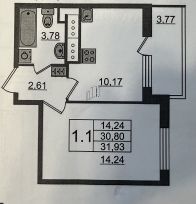 В длительную аренду (от 11 мес.) сдается уютная однокомнатная квартира в современном доме 2021 года постройки. Общая площадь квартиры составляет 31 кв. м, жилая площадь — 14.24 кв. м, а кухня — 10.17 кв. м. Квартира расположена на 11 этаже 27-этажного дома, окна выходят во двор. Высота потолков — 2.75 метра. В доме есть пассажирский и грузовые лифты, а также наземная парковка.