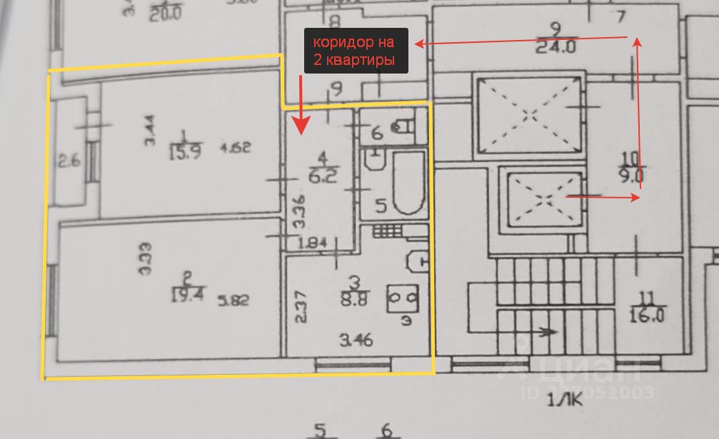 - 54 м² общая / 40 м² жилая / кухня 9 м²