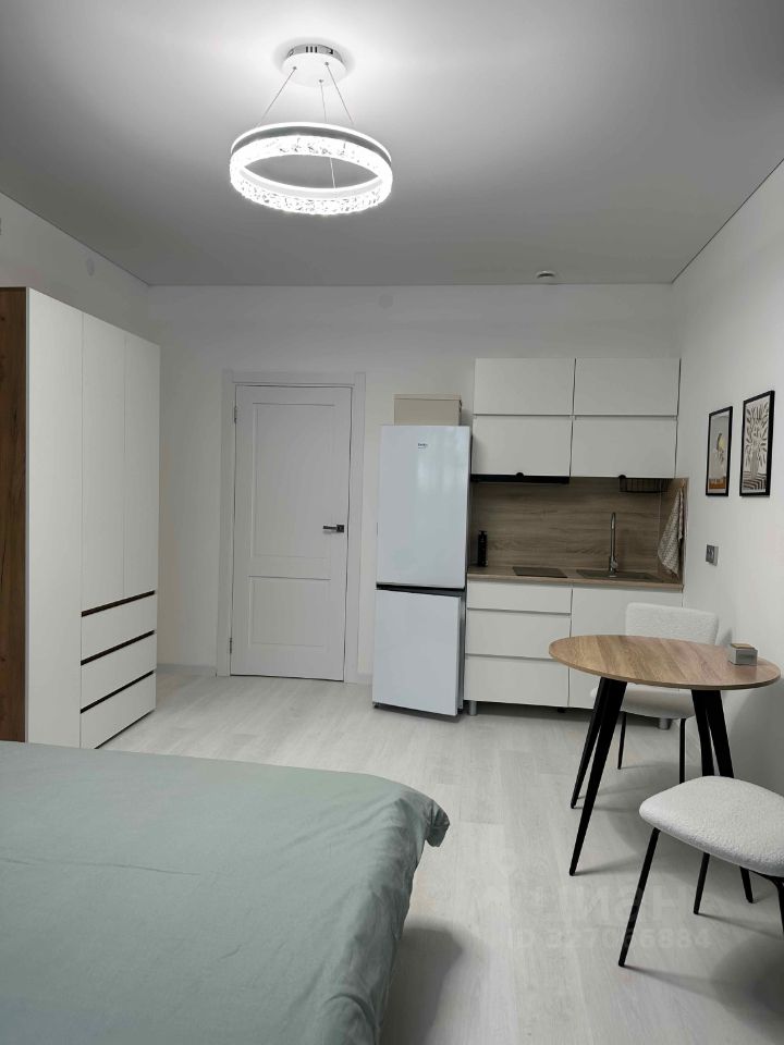 В квартире выполнен дизайнерский ремонт. По планировке: комната правильной формы, совмещенный сан/узел, большая застекленная лоджия. Спальное место - кровать. Продуманная система хранения вещей.