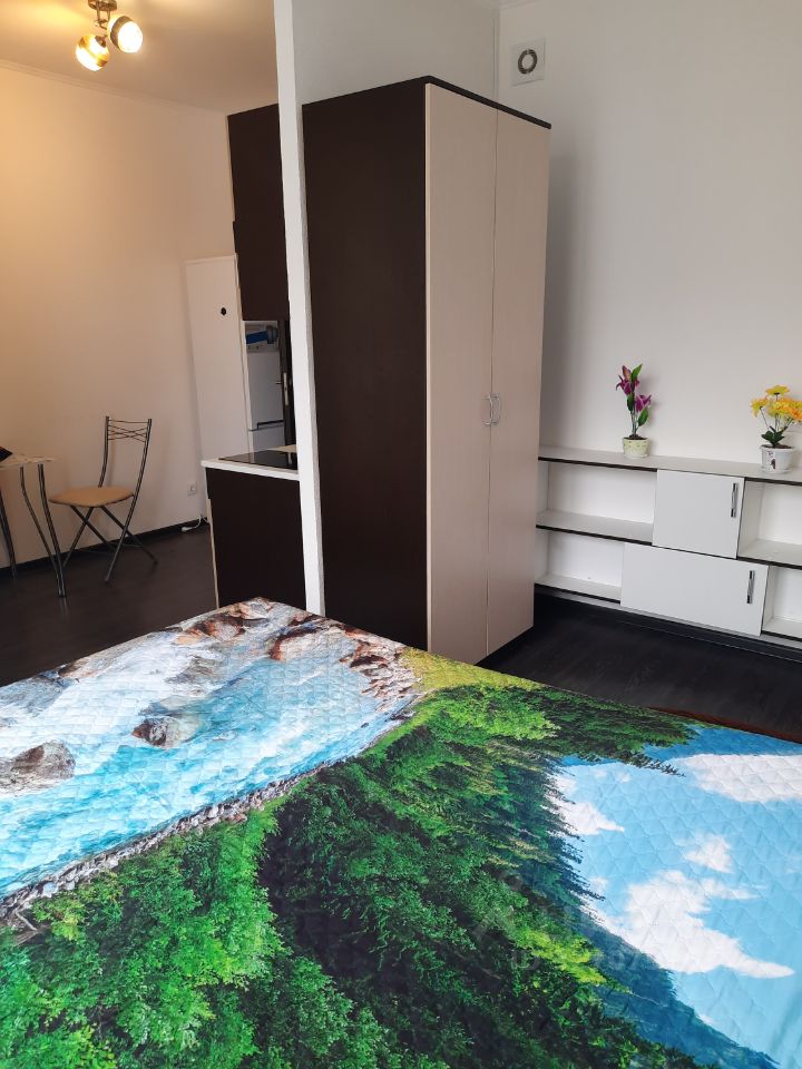 Сдаётся на любой срок от 1 месяца и более, уютная студия в современном жилом комплексе, расположенном в 10 минутах езды на автомобиле от метро. Квартира находится на 18 этаже 25-этажного дома, построенного в 2021 году. Общая площадь — 25 кв. м, жилая площадь — 18 кв. м, кухня — 5 кв. м. Высота потолков составляет 2,75 метра, окна выходят во двор.