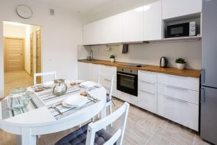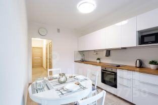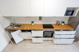 В квартире имеется всё необходимое для комфортного проживания- качественная мебель в комнатах и на кухне, отдельная гардеробная, современная бытовая техника (холодильник, микроволновая печь, посудомоечная машина, духовой шкаф, стиральная машина, эл. чайник). В интерьере выдержан лаконичный скандинавский стиль. Проведен полный клининг.