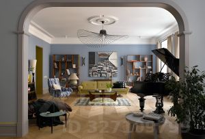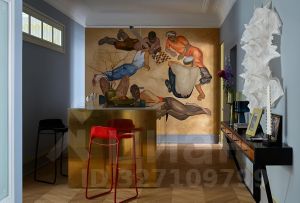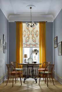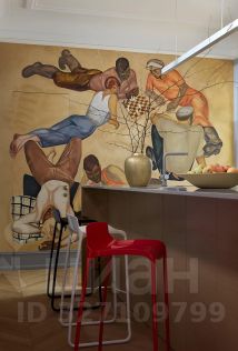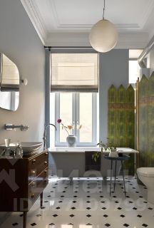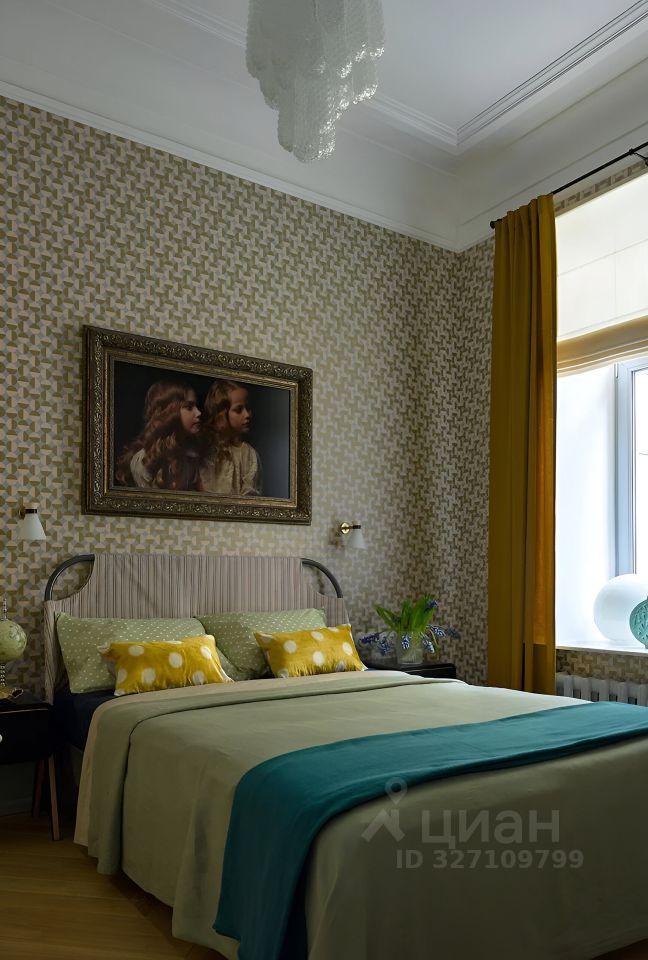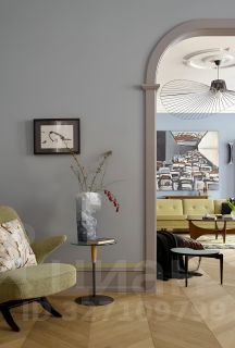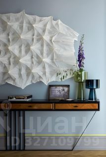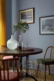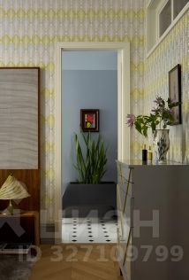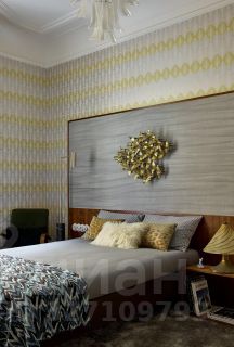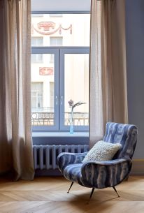 В апартаментах, площадь которых 150 кв. м., просторная гостиная, кухня и две спальни с туалетными комнатами. Атмосферу квартиры отметят и ценители классики, и поклонники современных течений в искусстве. Главные ее акценты: две печи с малахитовыми изразцами и большая фреска — ремейк картины представителя сурового стиля Виктора Попкова. Интерьер украшают культовое кресло Pinguin Chair голландского дизайнера Тео Рута (1953 год), журнальный столик Astro (1960-е годы), итальянские кресла Ladys Chair и немецкий рояль L. Strzwage (1864 год). Квартира оснащена бесключевым доступом, поэтому возможен заезд после 15:00.